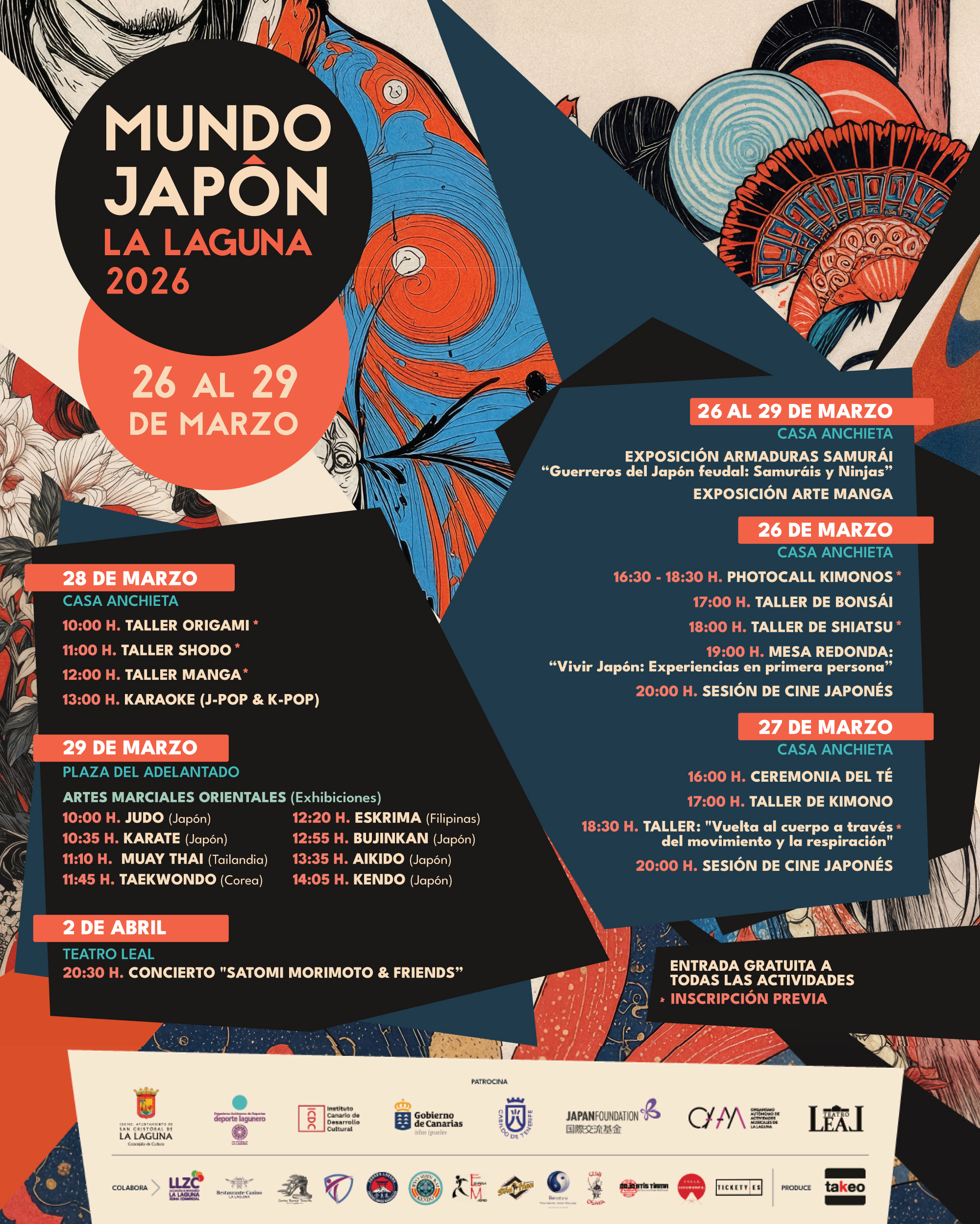 El evento Mundo Japón, organizado y producido por Takeo Global, es una plataforma de divulgación de la cultura nipona y sus tradiciones. A través de una programación multidisciplinar —charlas, conciertos, talleres, degustaciones gastronómicas y actividades vinculadas al manga, entre otras— desarrolla acciones en todo el territorio del archipiélago de las Islas Canarias.